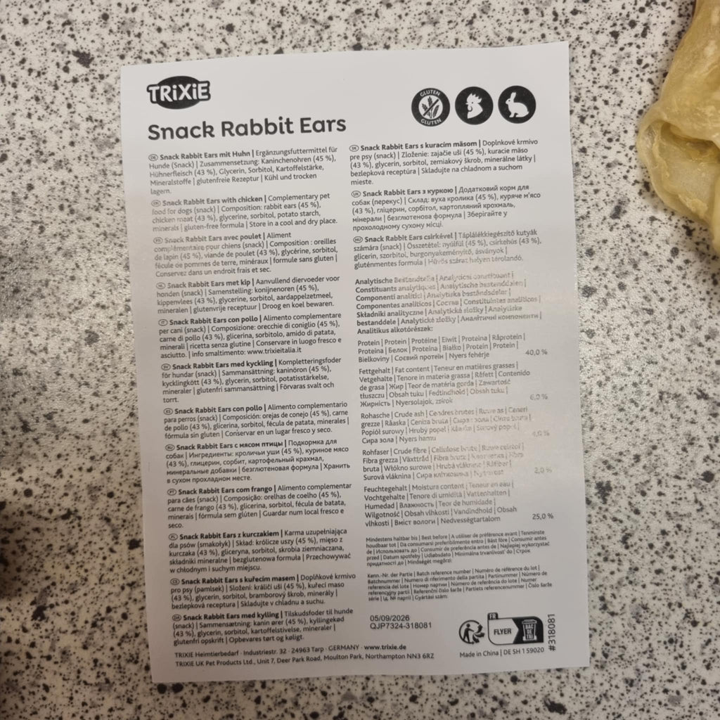 Lækre kaninører med kylling er en populær og velsmagende snack til hunde, der elsker naturlige tyggeoplevelser. Kombinationen af kaninører (45 %) og kyllingekød (43 %) giver en proteinrig snack med god tyggetid, som samtidig kan bidrage til hundens tandpleje.